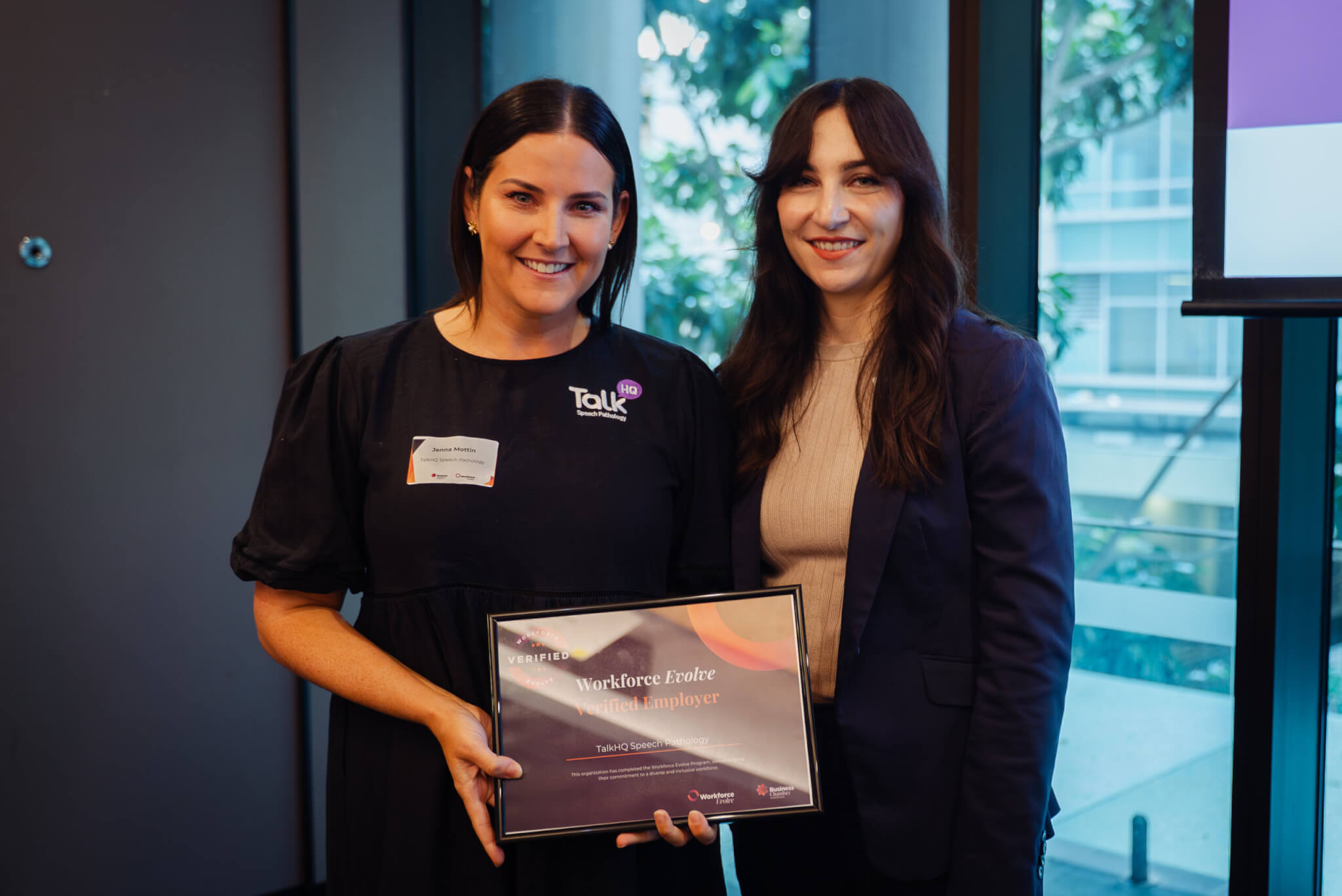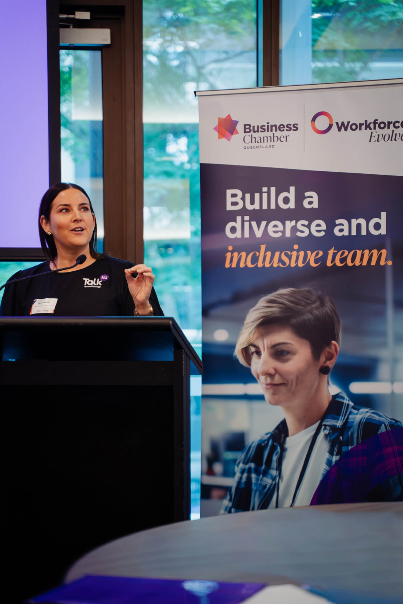 We then heard from Jenna Mottin, co-owner and senior speech pathologist at TalkHQ Speech Pathology and a Workforce Evolve Verified participant. Jenna shared how the program has helped her attract and retain staff in regional Queensland, strengthening her team and business.