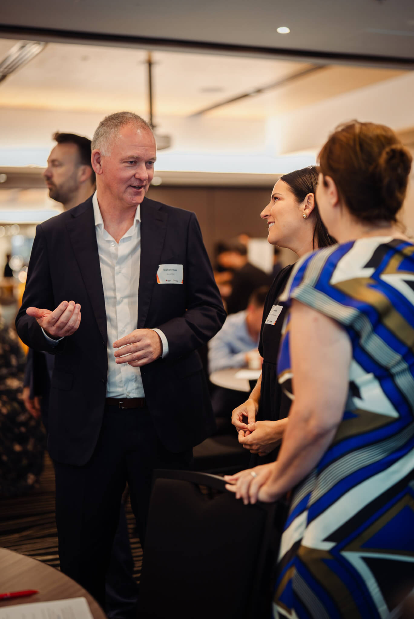 The morning opened with Graham Ross, co-founder of BlockTexx, a pioneering chemical recycler of post-consumer blended textiles. Graham shared how his team has embedded diversity and inclusion into their operations, partnering with The Big Issue, HELP Enterprises, and Queensland Corrective Services to support skills development, long-term employment, and improved life opportunities.